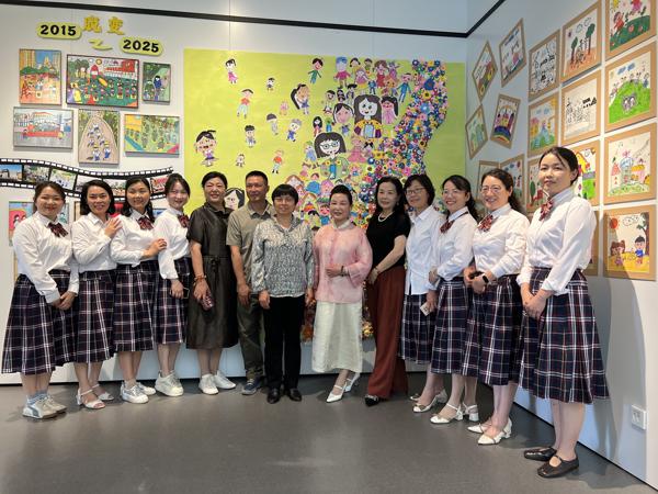“凝眸三十載光陰,見(jiàn)證成長(cháng)足跡”板塊中,孩子們通過(guò)繪畫(huà)與手工創(chuàng )作,精心還原了老園舍斑駁的磚墻,塑造出代代傳承的教師群像。同時(shí),還用抽象的色塊,勾勒出從傳統游戲到智慧課堂的時(shí)代變遷。歲月悠悠,童畫(huà)為證,壽州幼兒園三十年的發(fā)展歷程,猶如一幅徐徐展開(kāi)的絢麗畫(huà)卷,每一筆每一劃都承載著(zhù)教育工作者的初心與堅守。